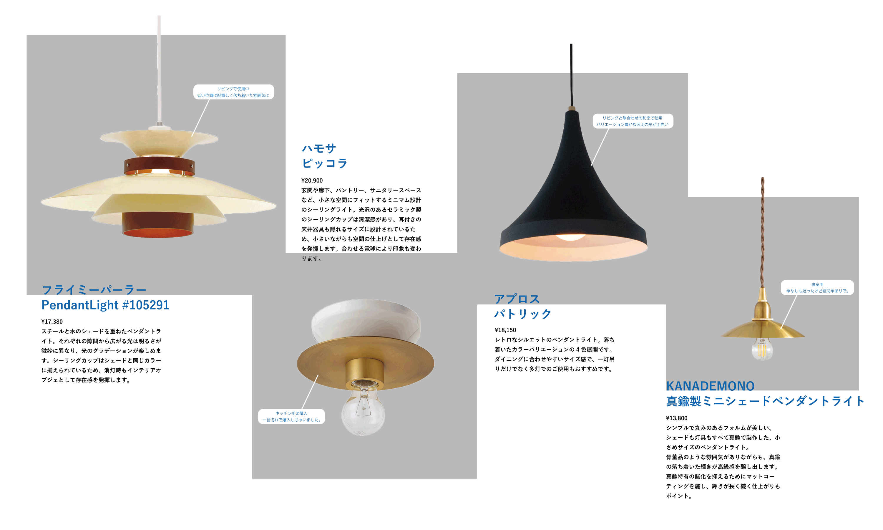 4)KANADEMONO 真鍮製ミニシェードペンダントライト