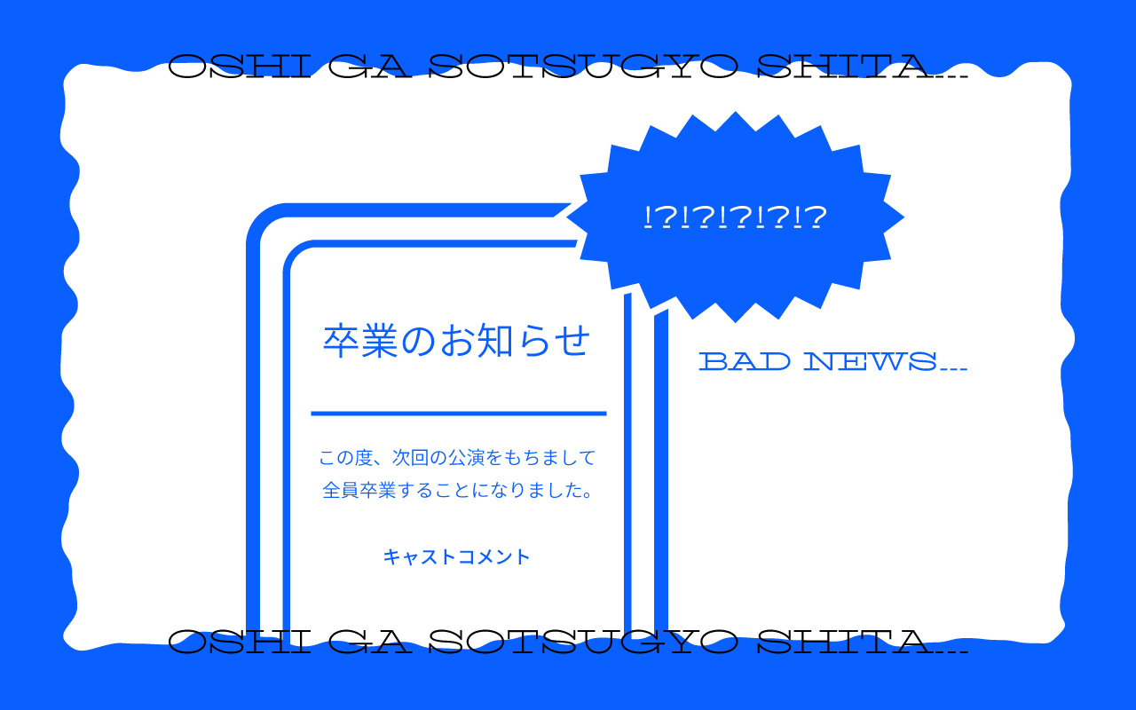 X(Twitter)に卒業の文面と、キャストのコメントが急に掲載され卒業を知ることになります。タイムラインは大荒れ。"全員卒業"がトレンド入りまでしていました。楽しみにしていた公演が卒業公演になるなんて誰も想像していませんでした。。