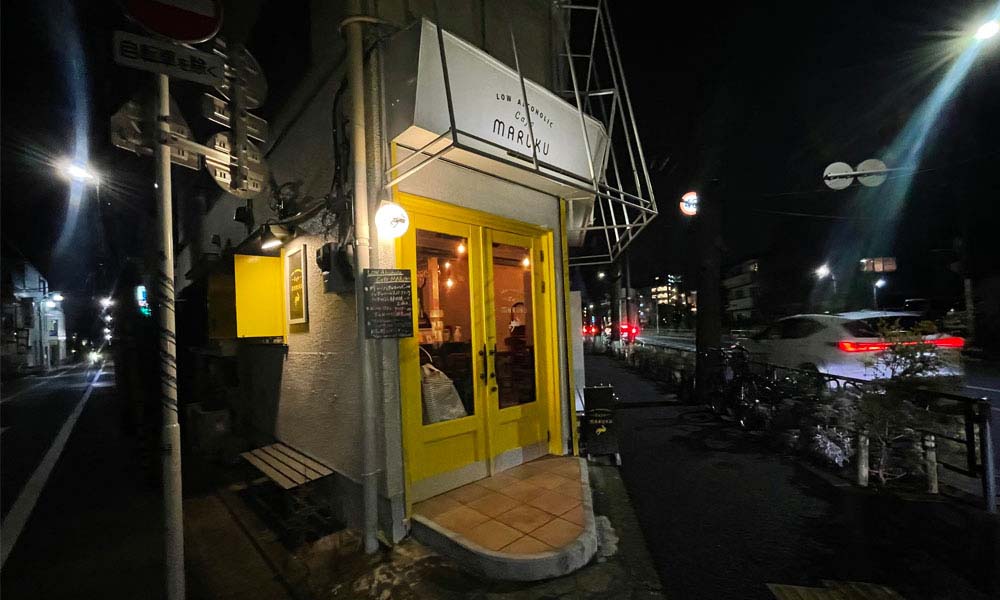 東急東横線「学芸大学駅」徒歩4分...駒沢通り沿いに構える、黄色い扉が印象的なロー アルコホリック カフェ マルクさんはノンアルや微アルを豊富に揃えたダイニングバー。初ソロバーでノンアルをメインとしているお店に行くイレギュラーさはさておき…