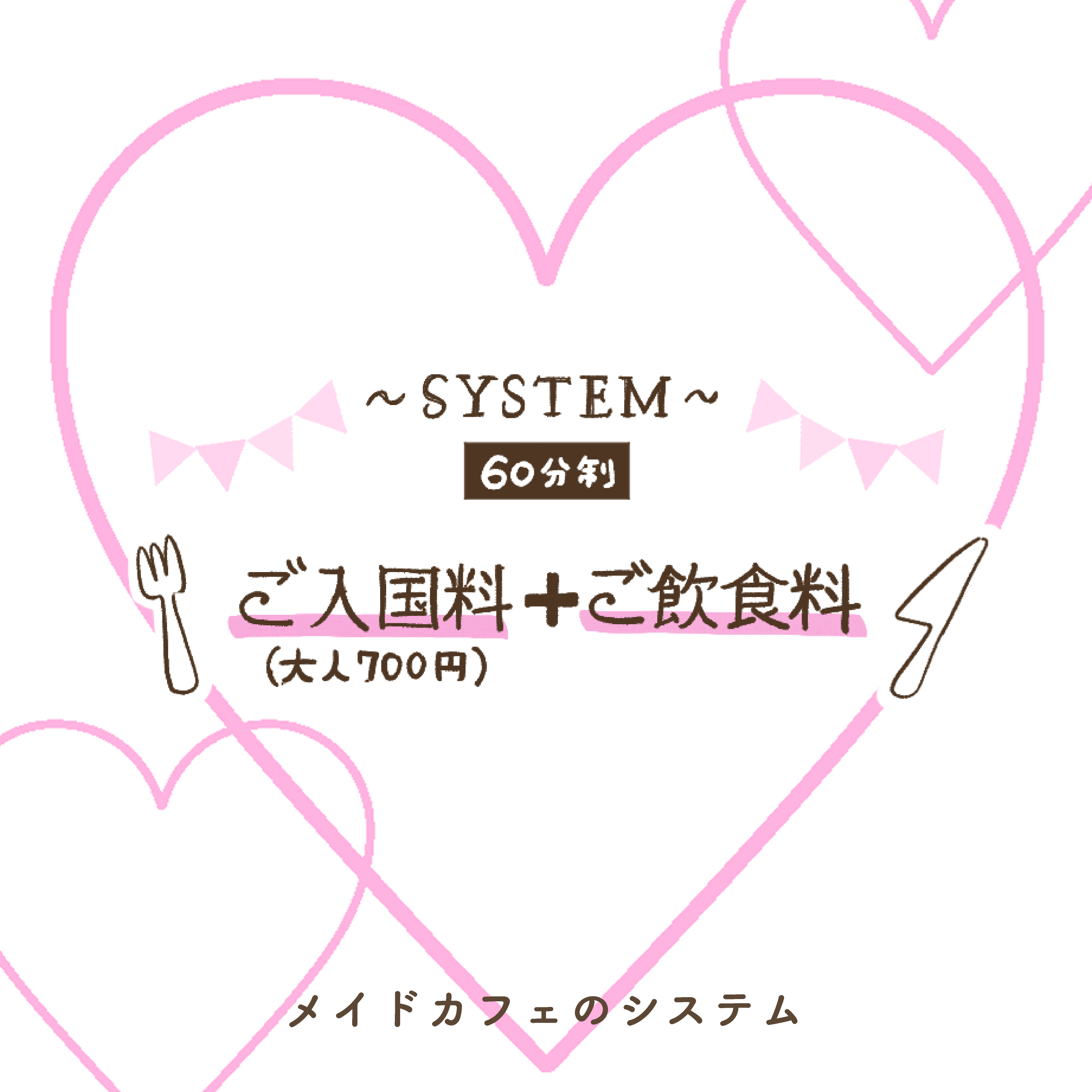 ちなみに、システムは入国料(大人700円)+飲食代となっており、60分制となっています。