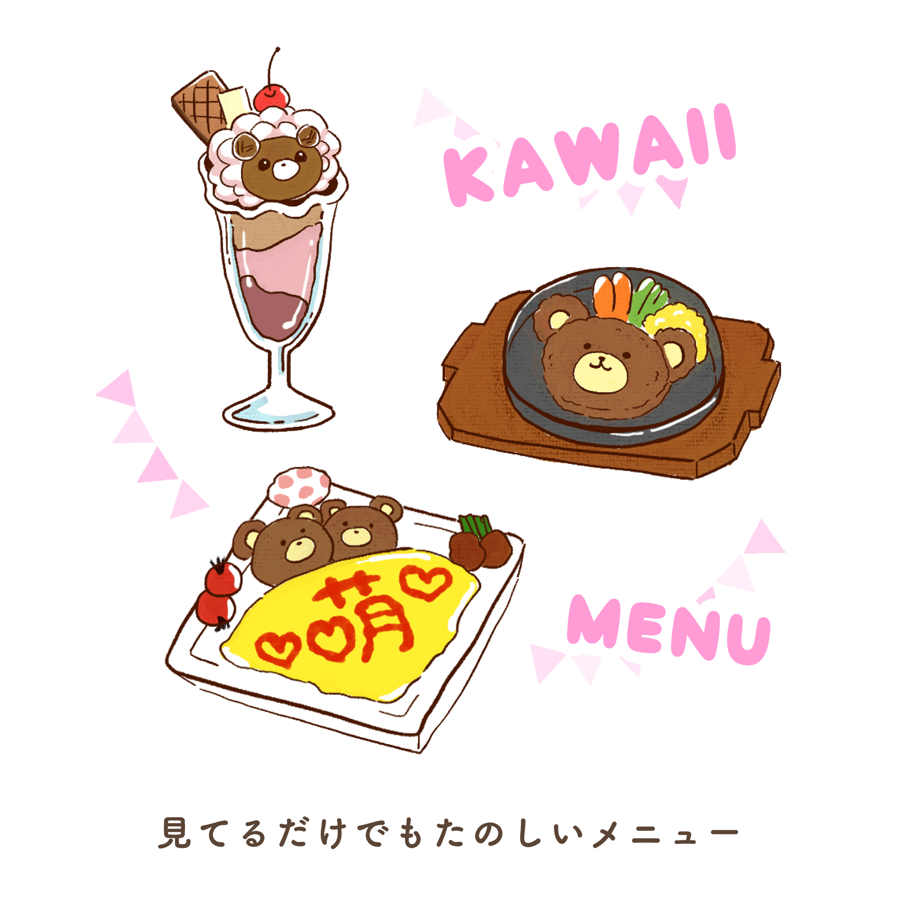 お店のメニューには卵を布団に見立ててくまさんが寝ているオムライス、ハンバーグをくまさんに見立てているハンバーグなど種類もたくさん。とっても可愛らしいメニューなので見ているだけでも楽しい。単品のメニューもありますが、メイドカフェを存分に楽しむならコースメニューがおすすめ。プラスで料金を払えばメイドさんがステージで歌やダンスなどのパフォーマンスも楽しめます。