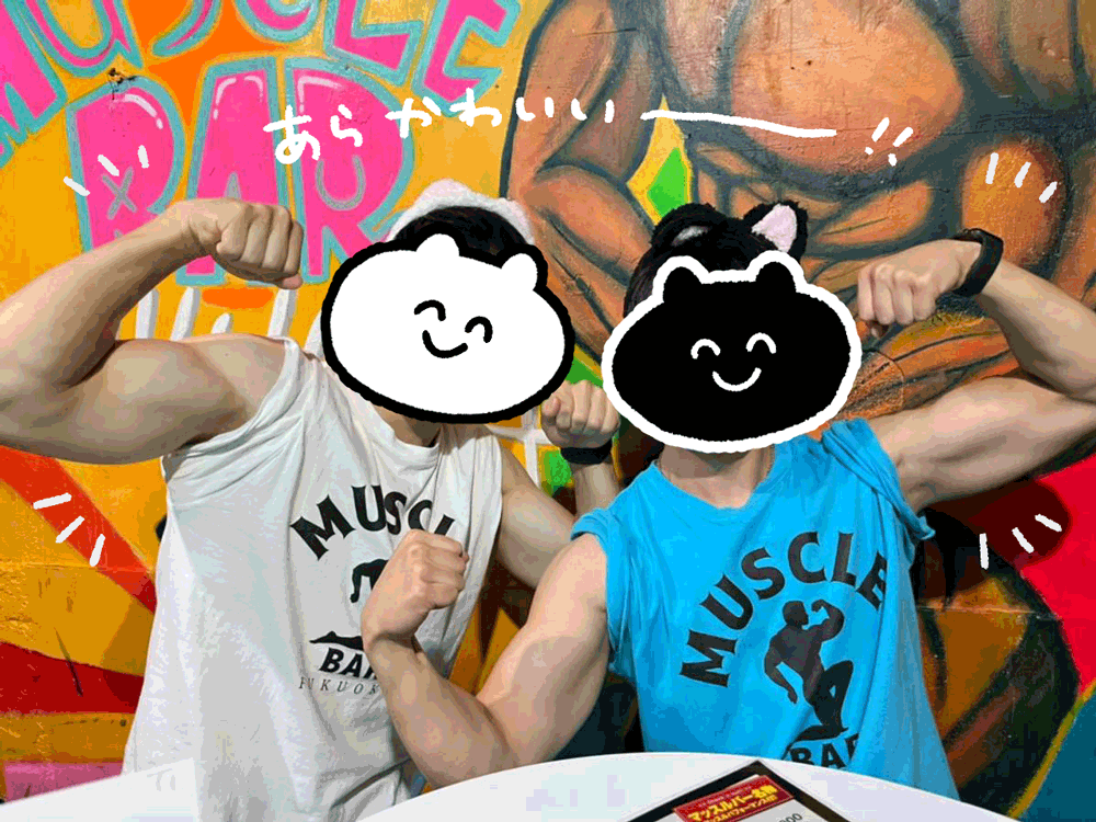 SNSでレポ漫画や動画がバズっているのを見て気になっていました。今までの人生でマッチョに出会ったことがないため、若干ビビっておりました…。もしかして過激な店…!?実際どうなのか…いざマッスルバーへ!私が行ったのは「筋肉酒場 福岡店」さんです!