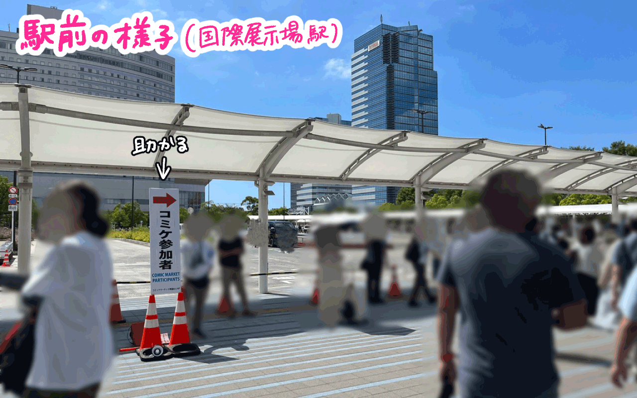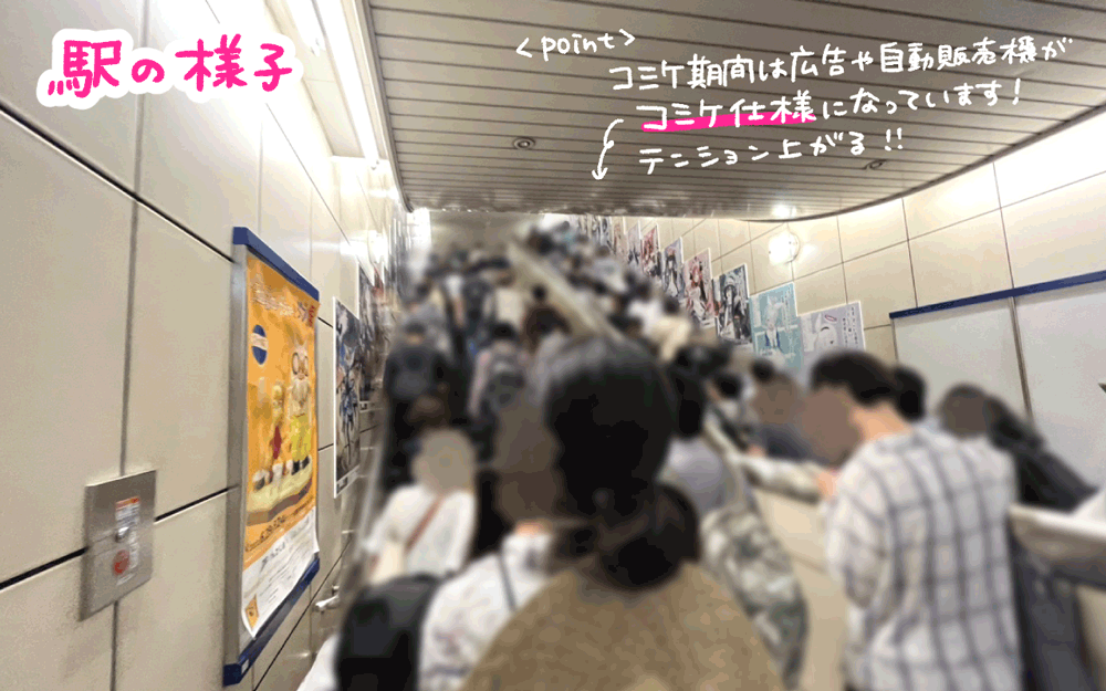 駅に着くとリュックを背負ったたくさんのオタクたちで溢れていました!この賑わいがお祭りのようでテンションが上がります!コミケは戦場だと言われていますが真相はいかに…