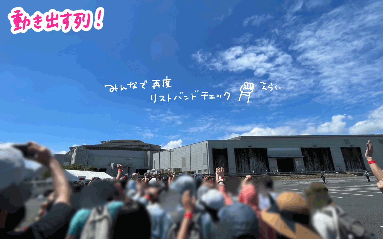 入り口でリストバンドをスタッフに見せて、やっと待機列に合流!