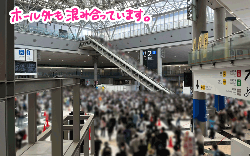 ようやく列が動き出しました。列が動き出してからはすんなり中に入ることができました。出入り口付近になるとオタクたちの歩くスピードが少し早くなります。各々お目当てのものを買うために…