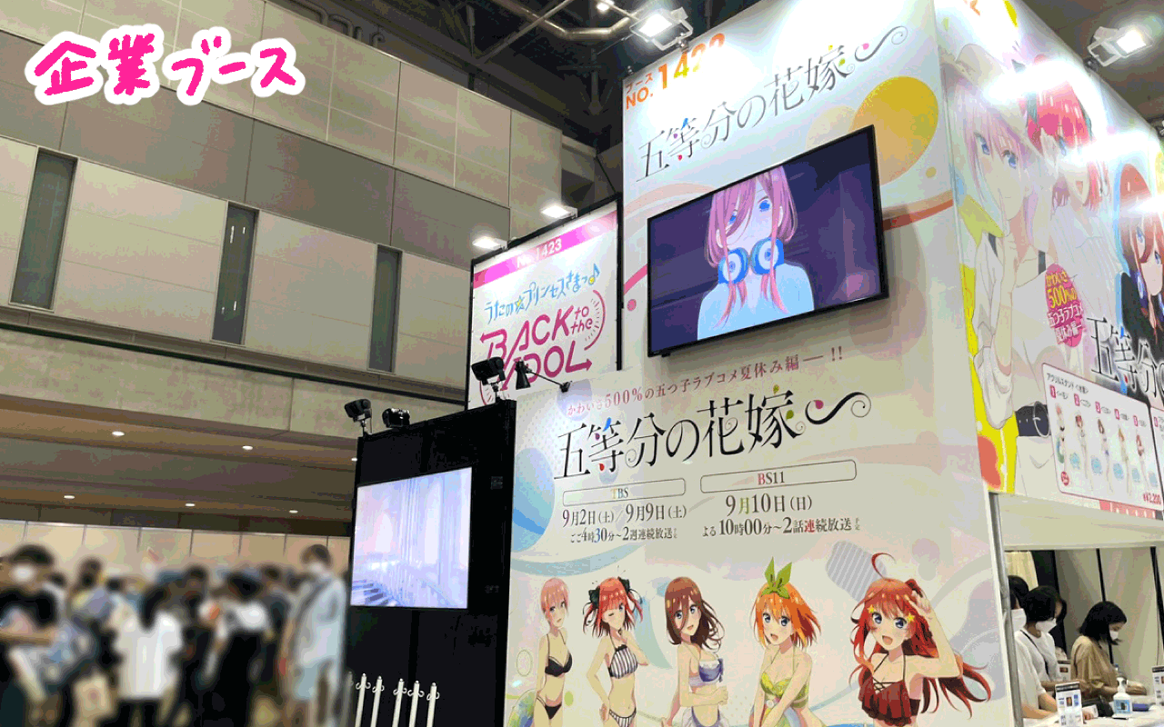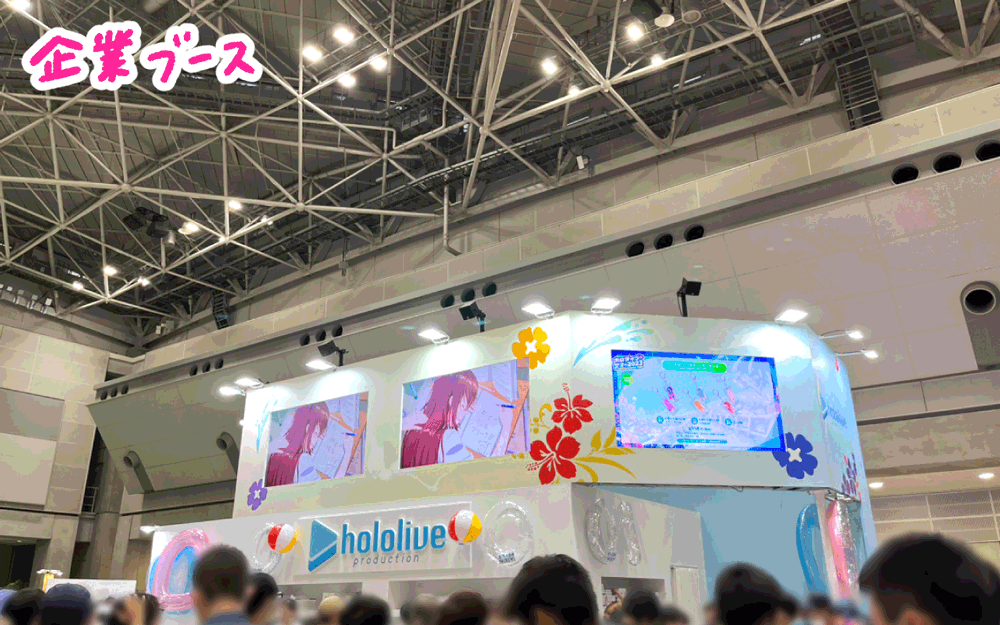 企業ブースにはアニメ会社やVTuberの事務所などが出展していました。展示一つ一つの規模が大きく、展示物も派手なので見応えがありました!