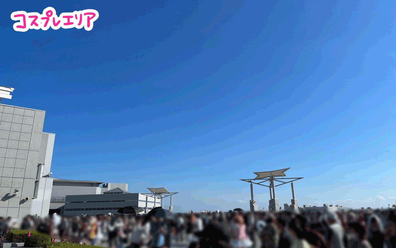 会場どこに行ってもとにかく人で溢れかえっているのですが、とくに屋内である即売会エリアは通り道が狭くなっているのもあり、まさにお祭りにある屋台の人混みを抜けるようでした。人気のある大手サークルさんは長蛇の列ができてしまうため、屋外に並ぶようになっています。欲しい物を見つけたので並んでみたら、並んだ10分後くらいに完売してしまいました。残念…。絶対欲しいものは事前リサーチをした上で先に買いましょう!!また、会場が広すぎるため東ホールから西ホールに行くときに迷子になりかけました。。。即売会エリアは基本的に撮れないので写真なしです。