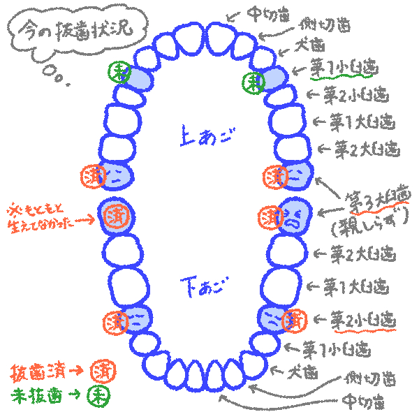 筆者の歯は噛み合わせが悪い+上顎前突(いわゆる出っ歯)で、それを整えるために、歯を抜いてスペースを確保します。