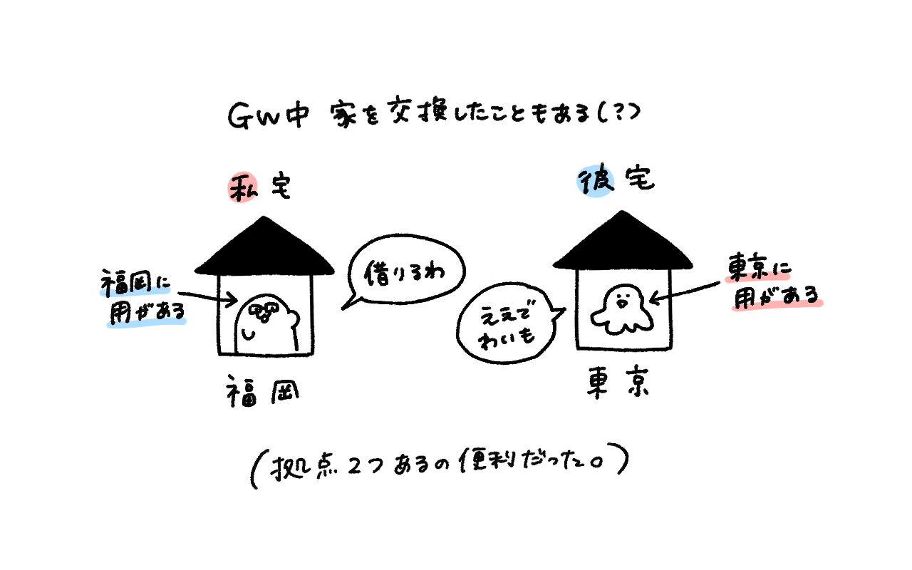 もしかしたらこの先も何らかの事情で単身赴任になったり、急に彼が海外に住む!と言い出したりするかもしれない。(わたしは日本で暮らしたい)今のところそれらの予定はありませんが、人生何が起こるか分かりませんもんね。何事でもそう思ってます。ですがやっぱ近くにいる方が楽しい時間をたくさん共有できるなあと感じました。